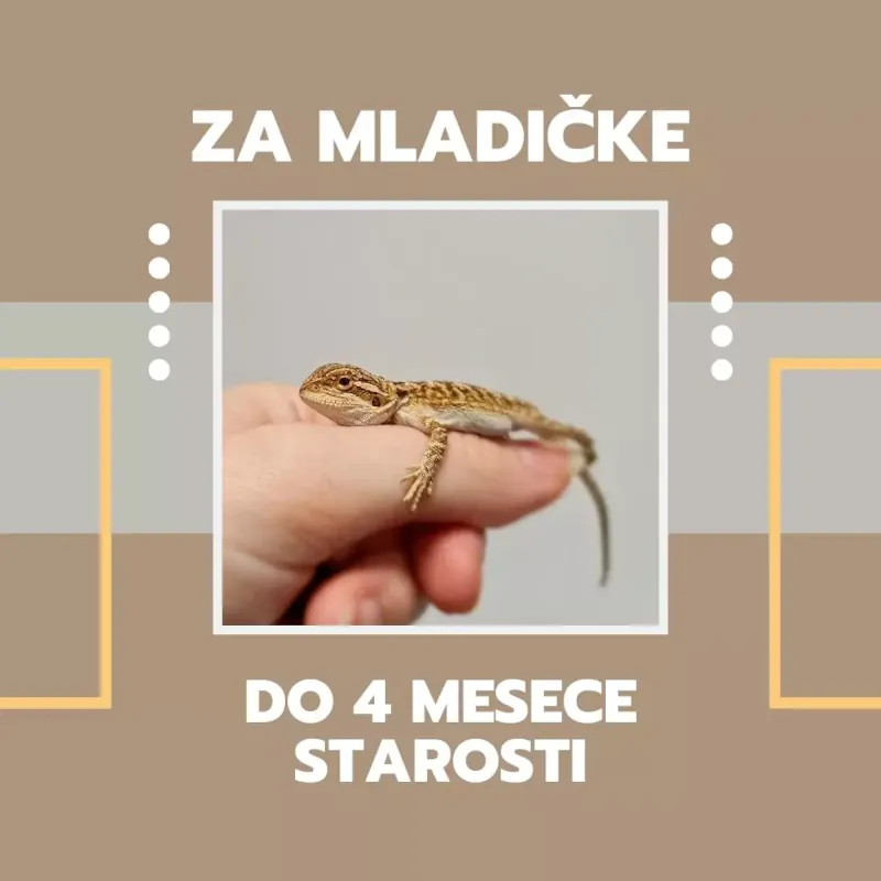 Agame – do 4. mesece starosti; so najbolj ranljive in dovzetne za bolezni, zato je zdrava in raznolika prehrana zelo pomembna. Za mladičke agam je predvideno hranjenje med 15-20 žuželk dnevno, zadostuje za ca. 14 dni. Paket vsebuje: