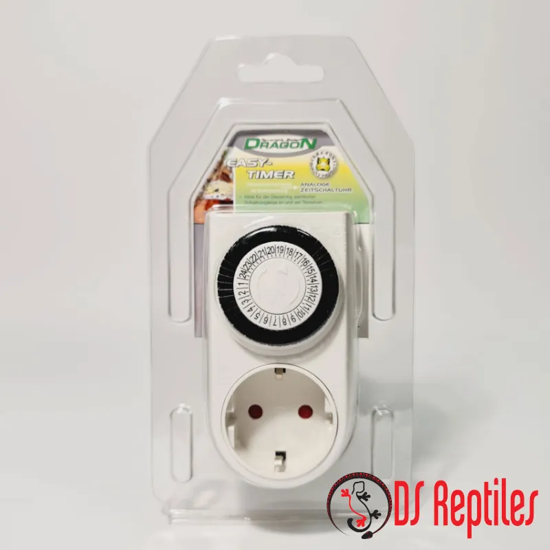 Dragon analogno časovno stikalo je idealno za nadzor vklopa/izklopa sijalk, grelnih elementov, pršilnikov v terariju. Prihranite energijo z nenamernim neprekinjenim delovanjem vaših porabnikov električne energije. Ta mini časovnik, ki je enostaven za uporabo, po potrebi vklopi in izklopi vaše porabnike do 48-krat na dan v 30-minutnih intervalih.