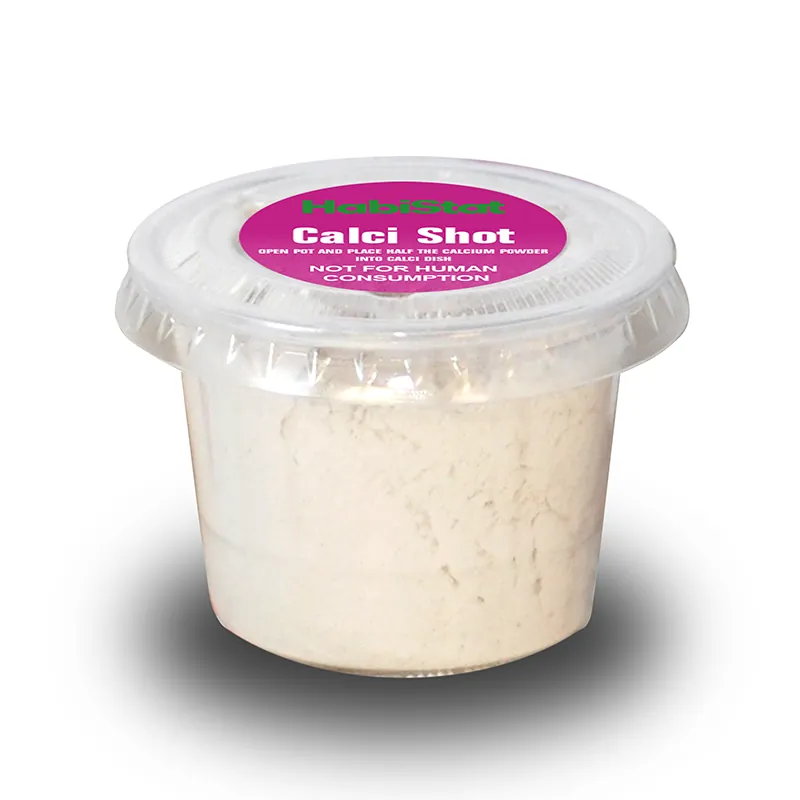 HabiStat Calci Shot zagotavlja dodaten vir kalcija za vašo žival. Prehransko dopolnilo s kalcijem (brez fosforja). Da bi vaši živali omogočili izkoriščanje kalcija v prehrani, potrebuje žival ustrezno izpostavljenost primerni UVB svetlobi. To je 15 g čistega kalcija, ki se popolnoma prilega posodi HabiStat Calci Dish.