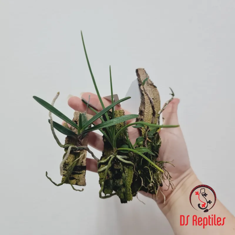 Orhideje so pritrjene na kos plutovca. Potrebujejo svetlo indirektno svetlobo. Vsak 2 dan jih popršimo z vodo.