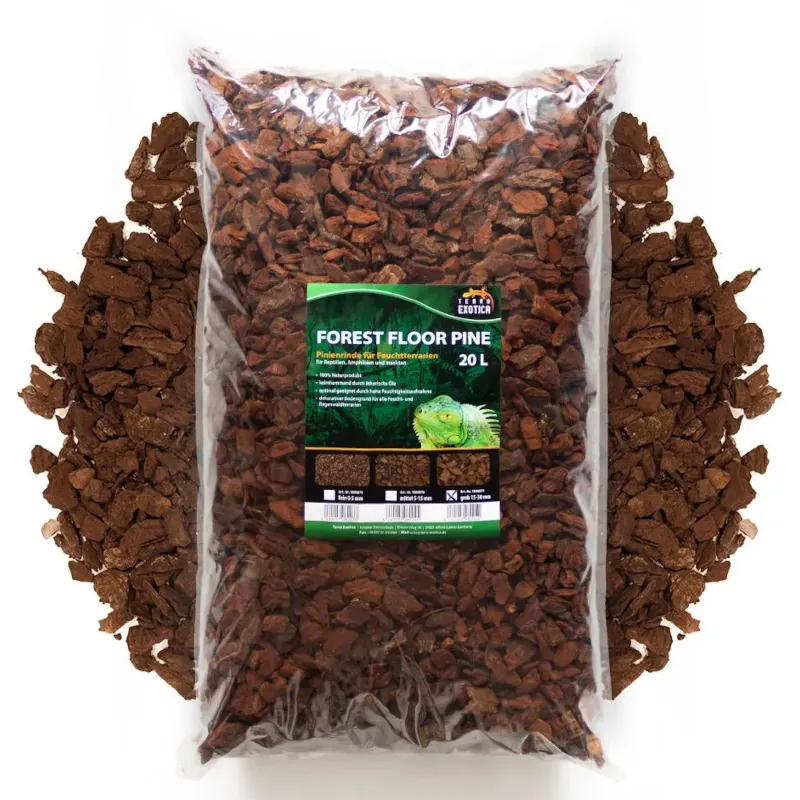 • Naravno in trajnostno: Ta substrat, izdelan iz trajnostno pridobljenega borovega lubja, ponuja vizualno privlačen, naraven videz, hkrati pa spodbuja naravno vedenje, kot sta kopanje in zakopavanje. Je popolnoma brez kemičnih dodatkov, zaradi česar je varen za široko paleto terarijskih živali.